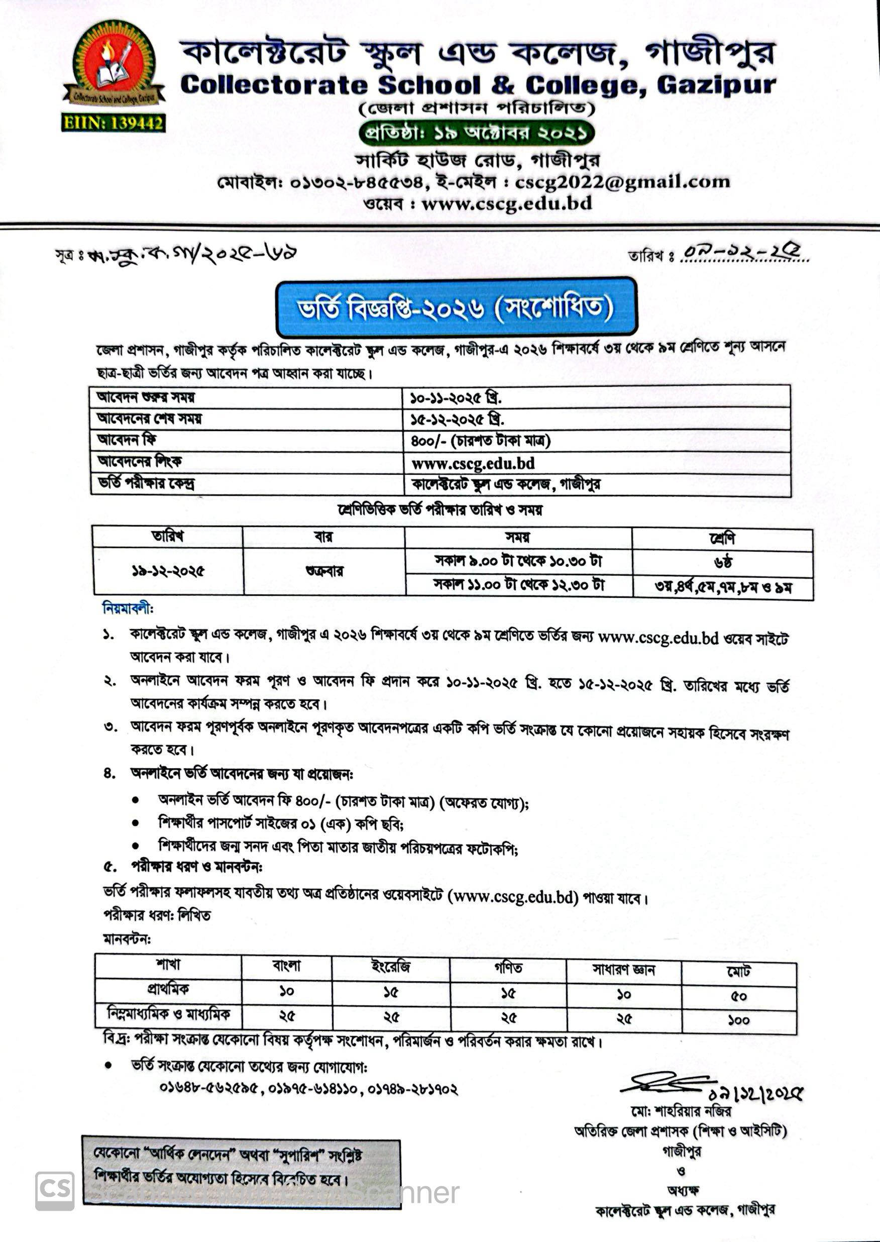 Collectorate School and College, Gazipur